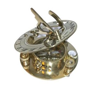 A Working Wonder If we had a category just for customers who lust after Jules Verne inventions and elegant gadgetry, this would be in it. The wonderful brass sundial, a reproduction of an antique, is approx 3" dia x 11/16" thick overall, and actually works! A latitudinal gauge lets you tilt the engraved dial to the correct angle for your location, and a bubble and three leveling feet allow the 1-1/2" dia lock-down compass to point in the precise direction. And if you never took it out into the sunshine, you'd still love it for the look and logic of it.